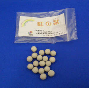 虹の栞”は、生成過程で会田伸一氏の開発した抗酸化溶液という特殊酵素を混入し、 約1,200〜1,300℃の熱で焼き上げて作ったセラミックスです。「飲料水用セラミックス」光と水の妖精は、サイズの問題で 使用用途に制限ができていましたたが、更に、サイズダウンすることにより、多種多様な使用法が可能になりました。